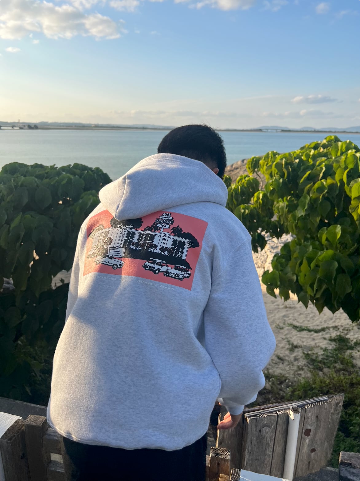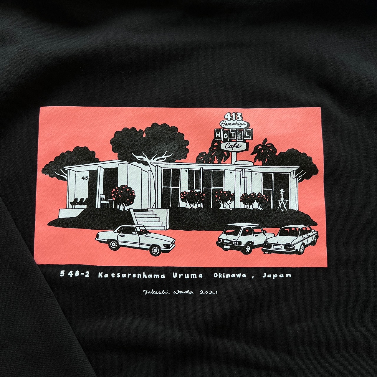 413 hamahiga hotel&cafe のために描き下ろしたアートを使用。